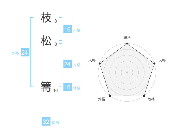 枝松 篝さんの天格は16画の5点!