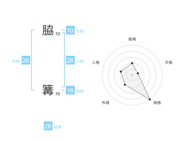脇 篝さんの総格は26画の2点!