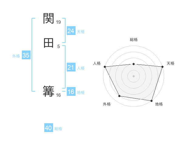 関田 篝さんの総格は40画の2点!