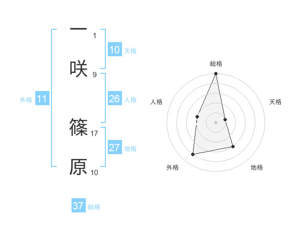 一咲 篠原さんを姓名の画数から五運を鑑定