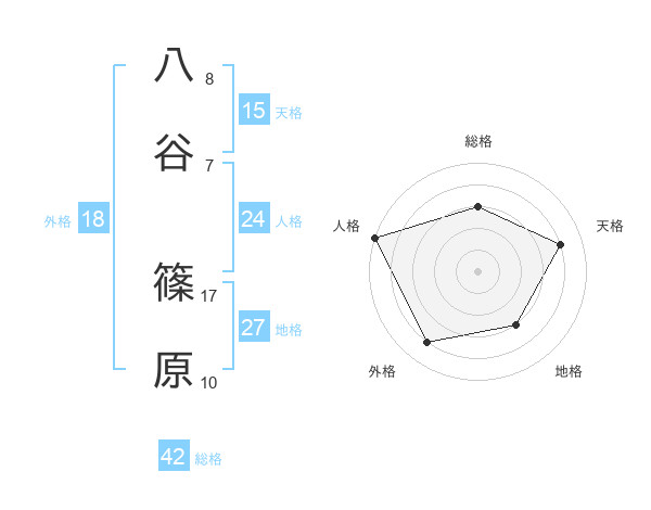 八谷 篠原さんの総格は42画の3点!