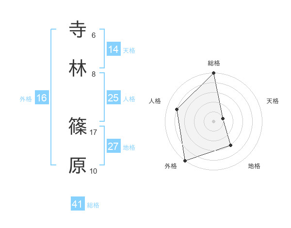 寺林 篠原さんの総格は41画の5点!