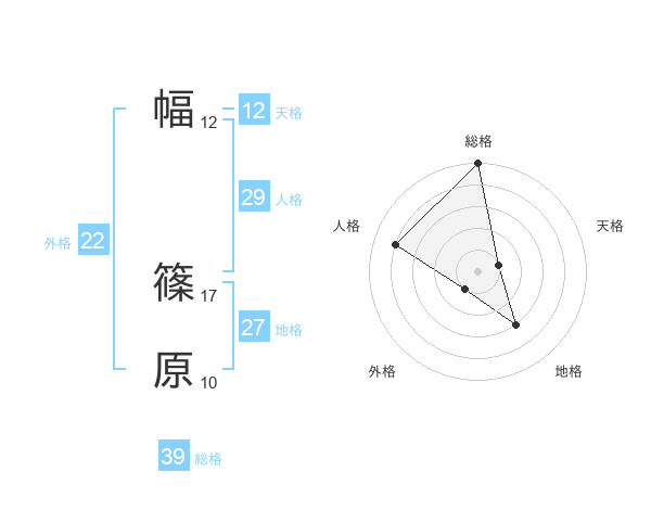 幅 篠原さんの地格は27画の3点!