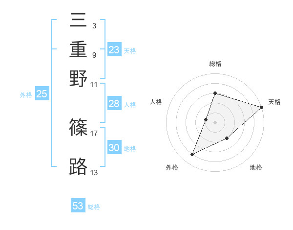 三重野 篠路さんを姓名の画数から五運を鑑定