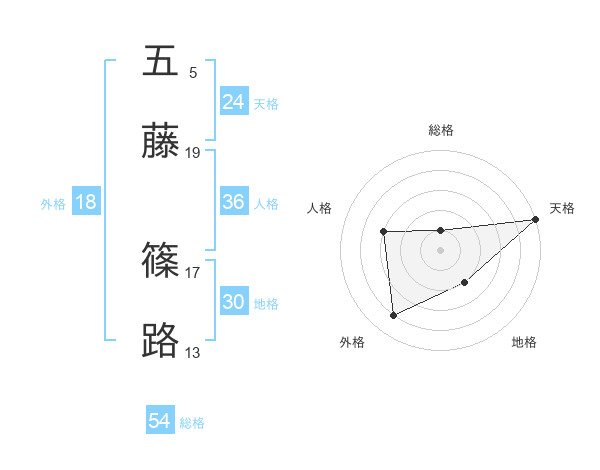 五藤 篠路さんを姓名の画数から五運を鑑定