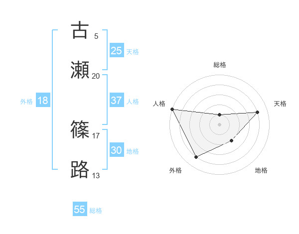 古瀬 篠路さんの総格は55画の1点!