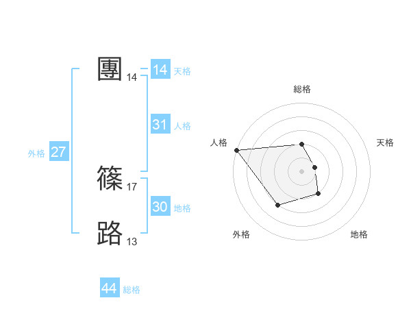 團 篠路さんの総格は44画の2点!
