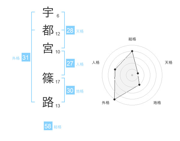 宇都宮 篠路さんを姓名の画数から五運を鑑定