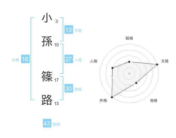 小孫 篠路さんの天格は13画の5点!