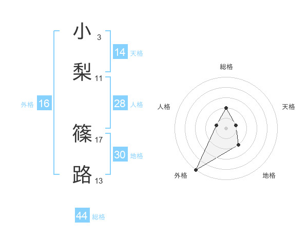 小梨 篠路さんの総格は44画の2点!