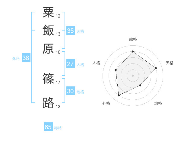 粟飯原 篠路さんの総格は65画の4点!