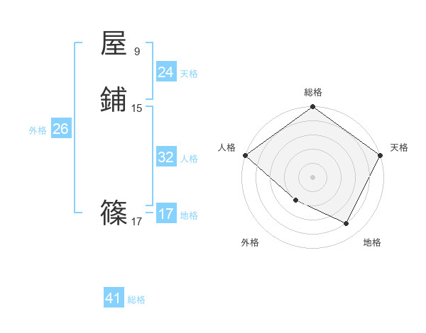 屋鋪 篠さんの天格は24画の5点!