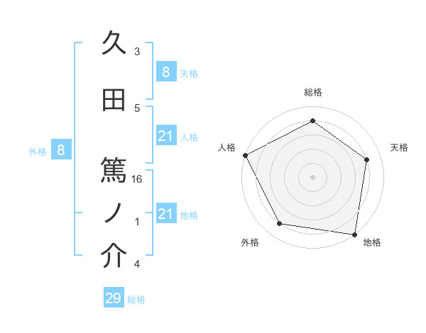 久田 篤ノ介さんを姓名の画数から五運を鑑定