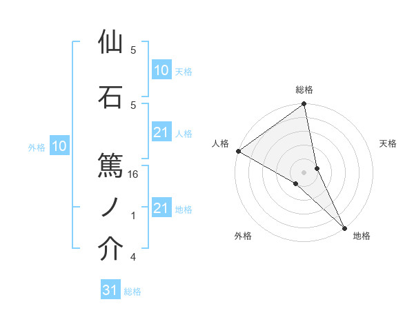 仙石 篤ノ介さんを姓名の画数から五運を鑑定