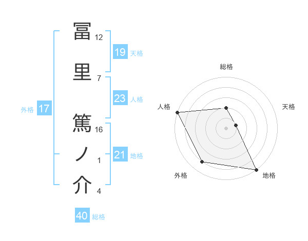 冨里 篤ノ介さんを姓名の画数から五運を鑑定