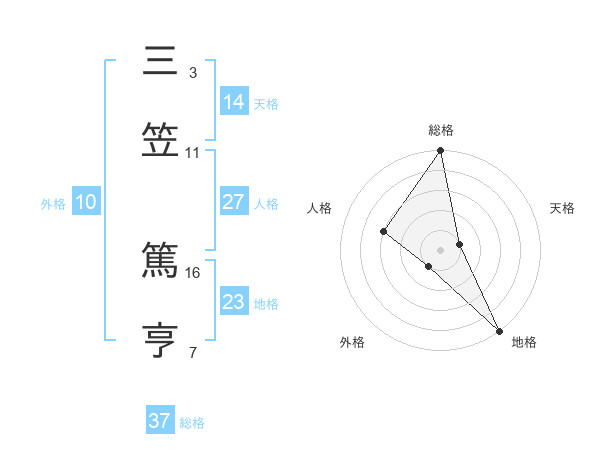 三笠 篤亨さんを姓名の画数から五運を鑑定