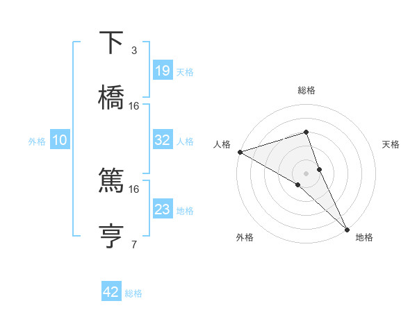 下橋 篤亨さんを姓名の画数から五運を鑑定