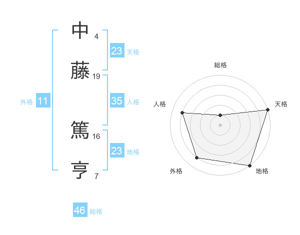 中藤 篤亨さんの天格は23画の5点!