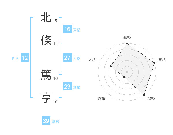 北條 篤亨さんの天格は16画の5点!