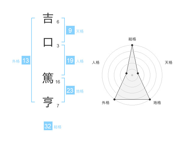 吉口 篤亨さんの総格は32画の5点!