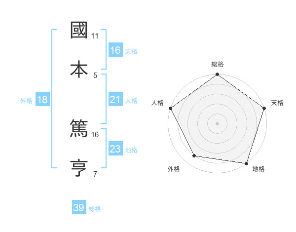 國本 篤亨さんの天格は16画の5点!