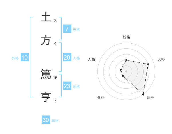 土方 篤亨さんの地格は23画の5点!