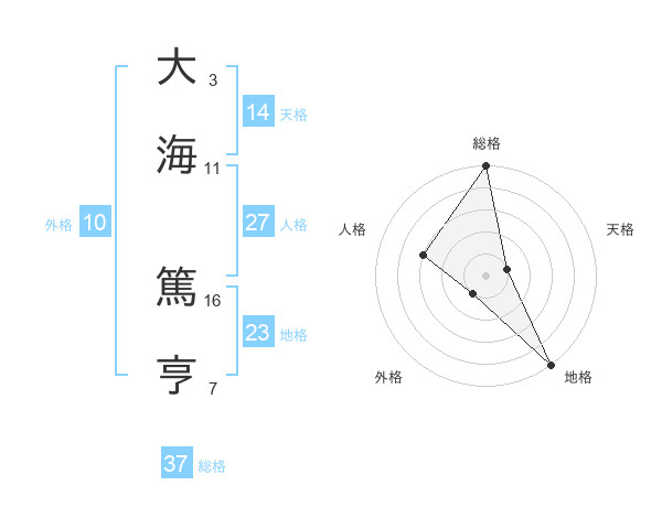 大海 篤亨さんの総格は37画の5点!
