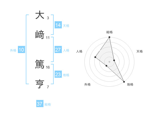 大﨑 篤亨さんを姓名の画数から五運を鑑定