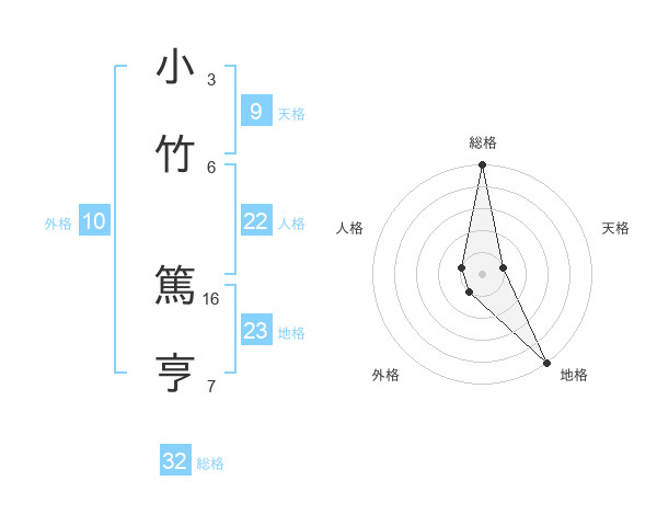 小竹 篤亨さんの総格は32画の5点!