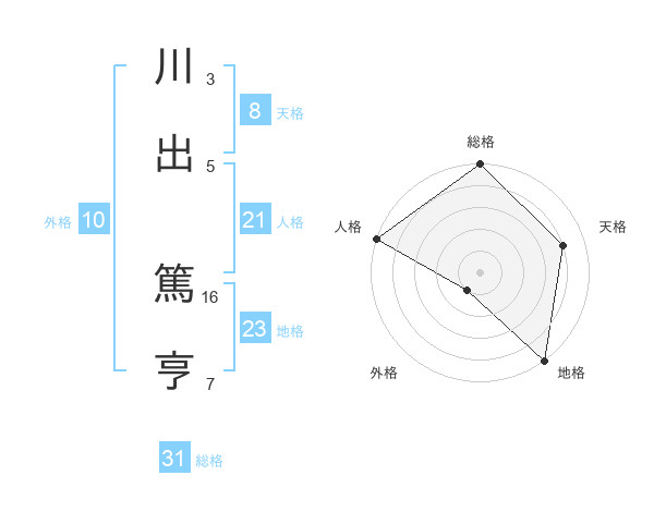川出 篤亨さんの総格は31画の5点!