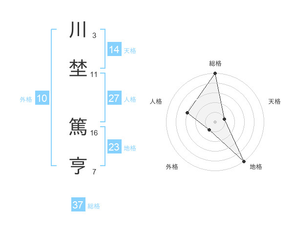川埜 篤亨さんの総格は37画の5点!