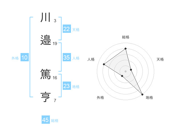 川邉 篤亨さんの総格は45画の4点!
