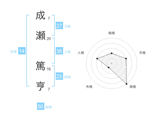 成瀬 篤亨さんの総格は50画の2点!