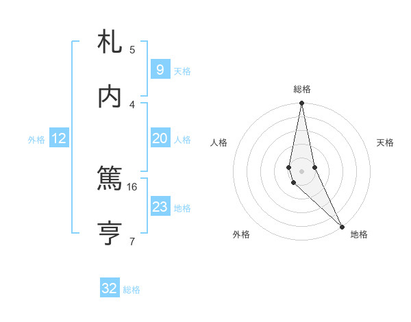 札内 篤亨さんを姓名の画数から五運を鑑定