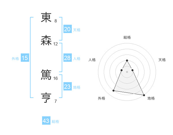 東森 篤亨さんを姓名の画数から五運を鑑定