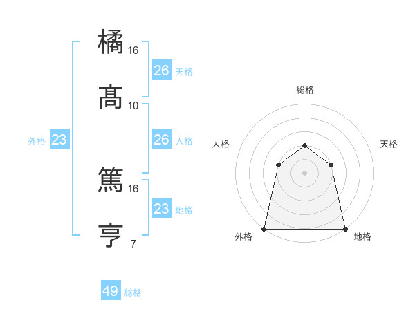 橘髙 篤亨さんを姓名の画数から五運を鑑定