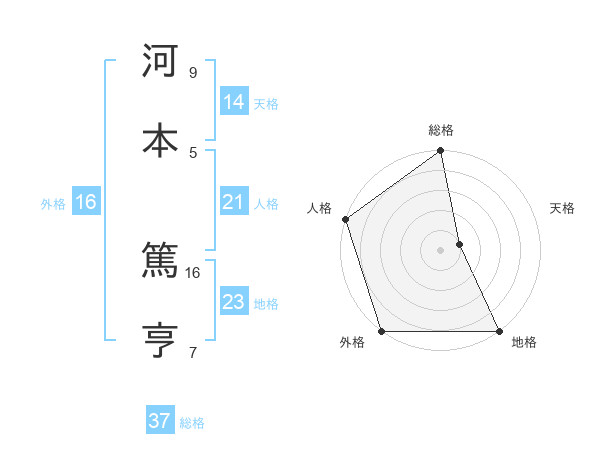 河本 篤亨さんを姓名の画数から五運を鑑定