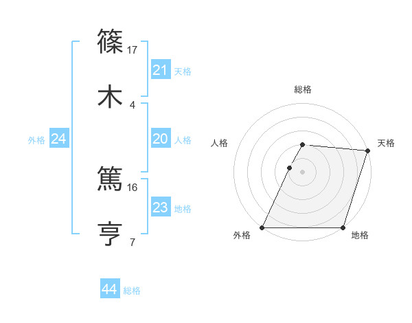 篠木 篤亨さんの天格は21画の5点!