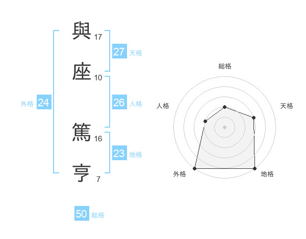 與座 篤亨さんの総格は50画の2点!