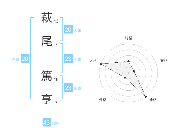 萩尾 篤亨さんの地格は23画の5点!