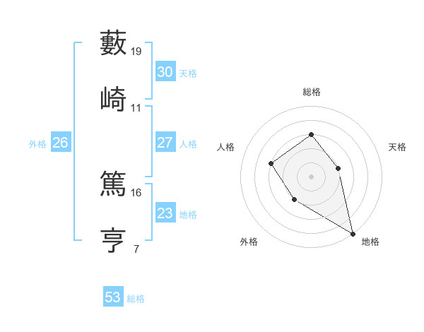藪崎 篤亨さんの総格は53画の3点!