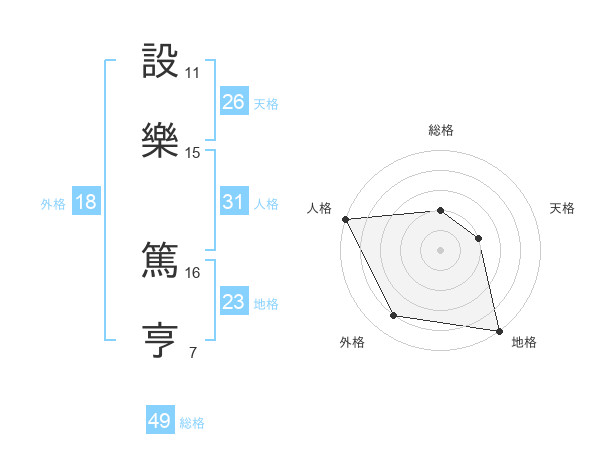 設樂 篤亨さんを姓名の画数から五運を鑑定