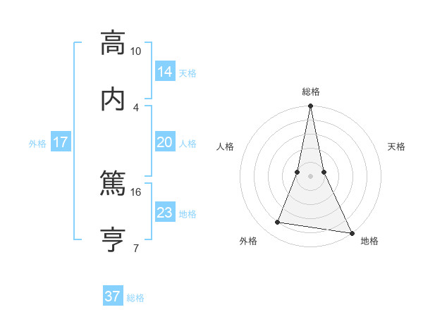 高内 篤亨さんの総格は37画の5点!