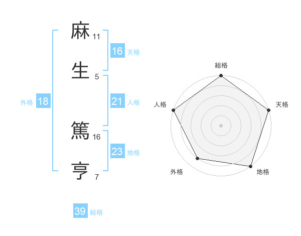 麻生 篤亨さんの天格は16画の5点!