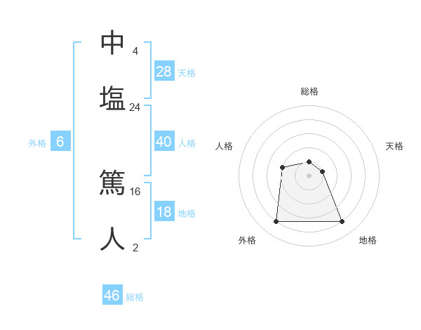 中塩 篤人さんを姓名の画数から五運を鑑定