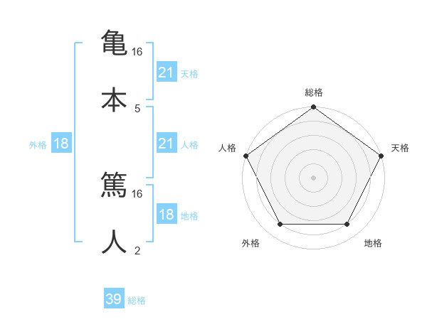 亀本 篤人さんの総格は39画の5点