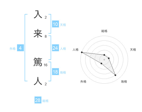 入来 篤人さんの総格は28画の1点!