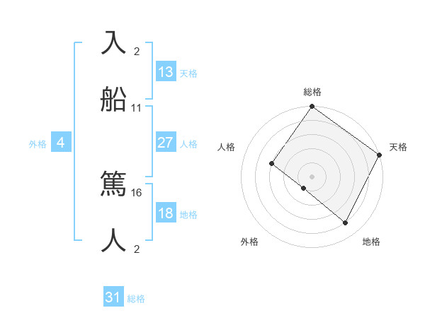 入船 篤人さんの総格は31画の5点!