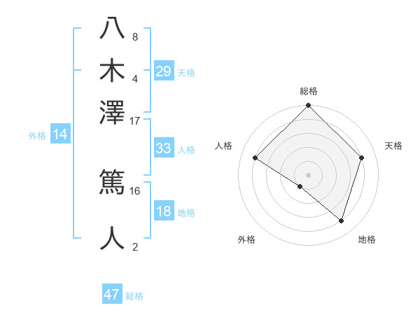 八木澤 篤人さんの総格は47画の5点!