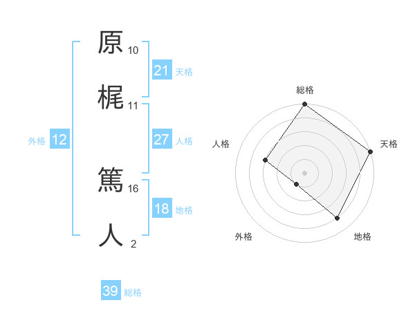 原梶 篤人さんの人格は27画の3点!